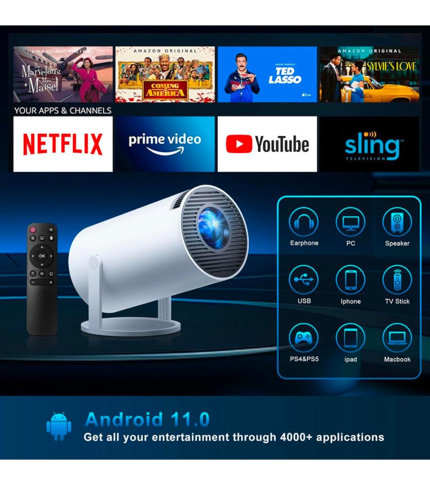 ● دقة FHD: يدعم جهاز العرض دقة 1920 × 1080، لتستمتع بتفاصيل رائعة وألوان حية عند مشاهدة الأفلام أو العروض.